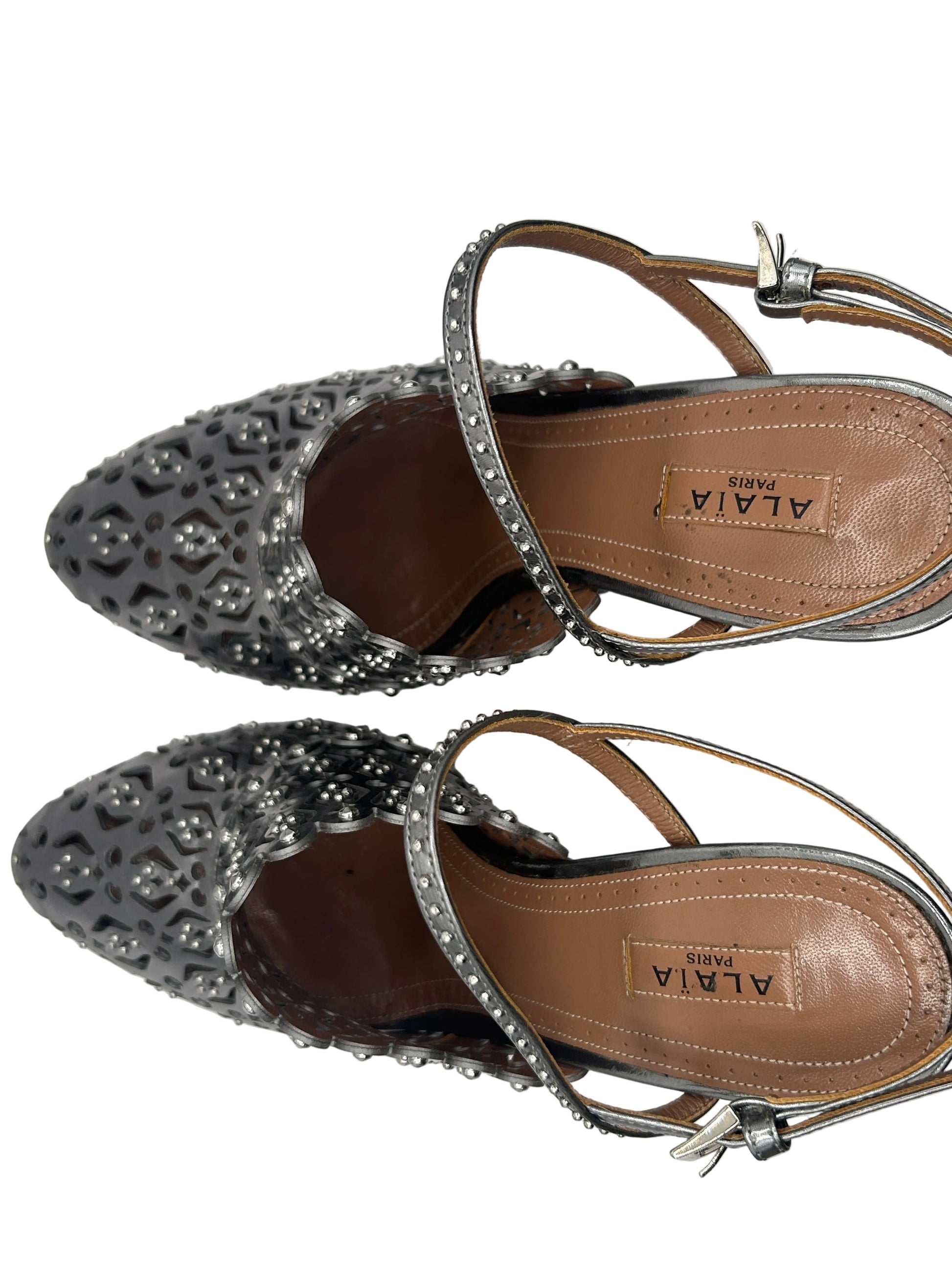 ALAIA Laser-Cut Studded pumps, Silver