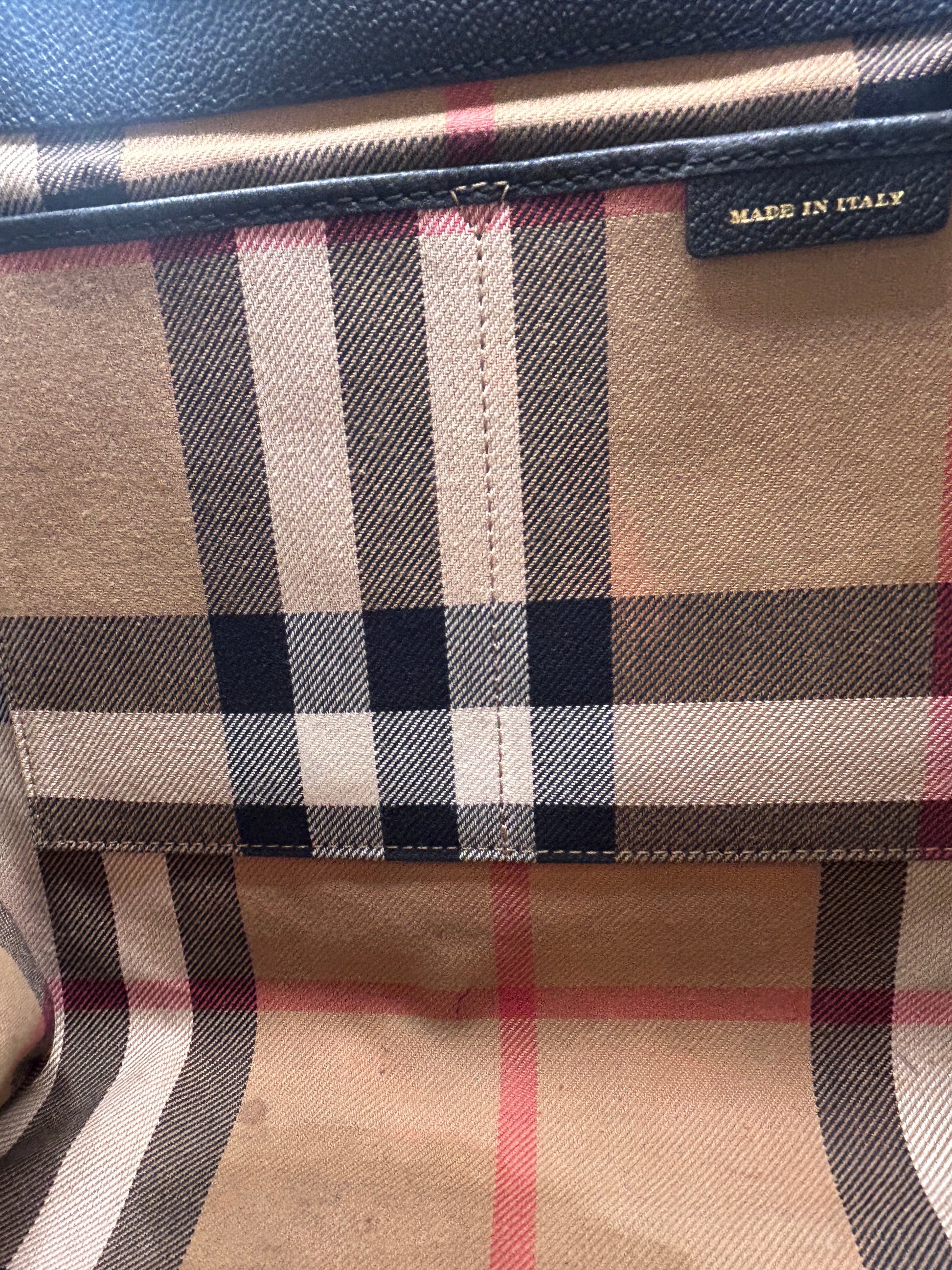 This bag comes with a wide removable leather shoulder strap and its iconic "Tartan Nova Check" from the House of Burberry.