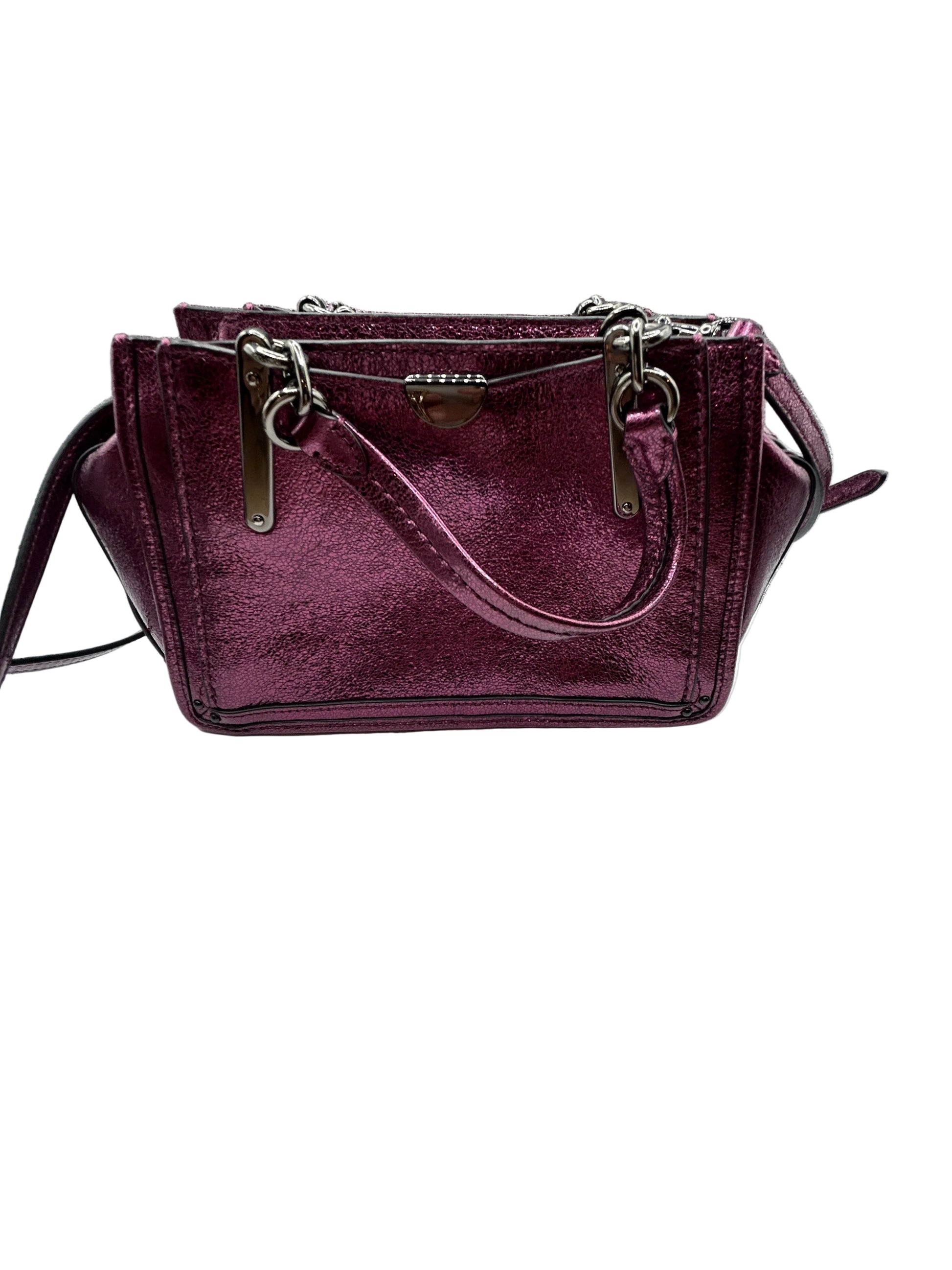 - Made from luxurious leather with a metallic finish, this mini bag features a zip closure and gunmetal hardware.
