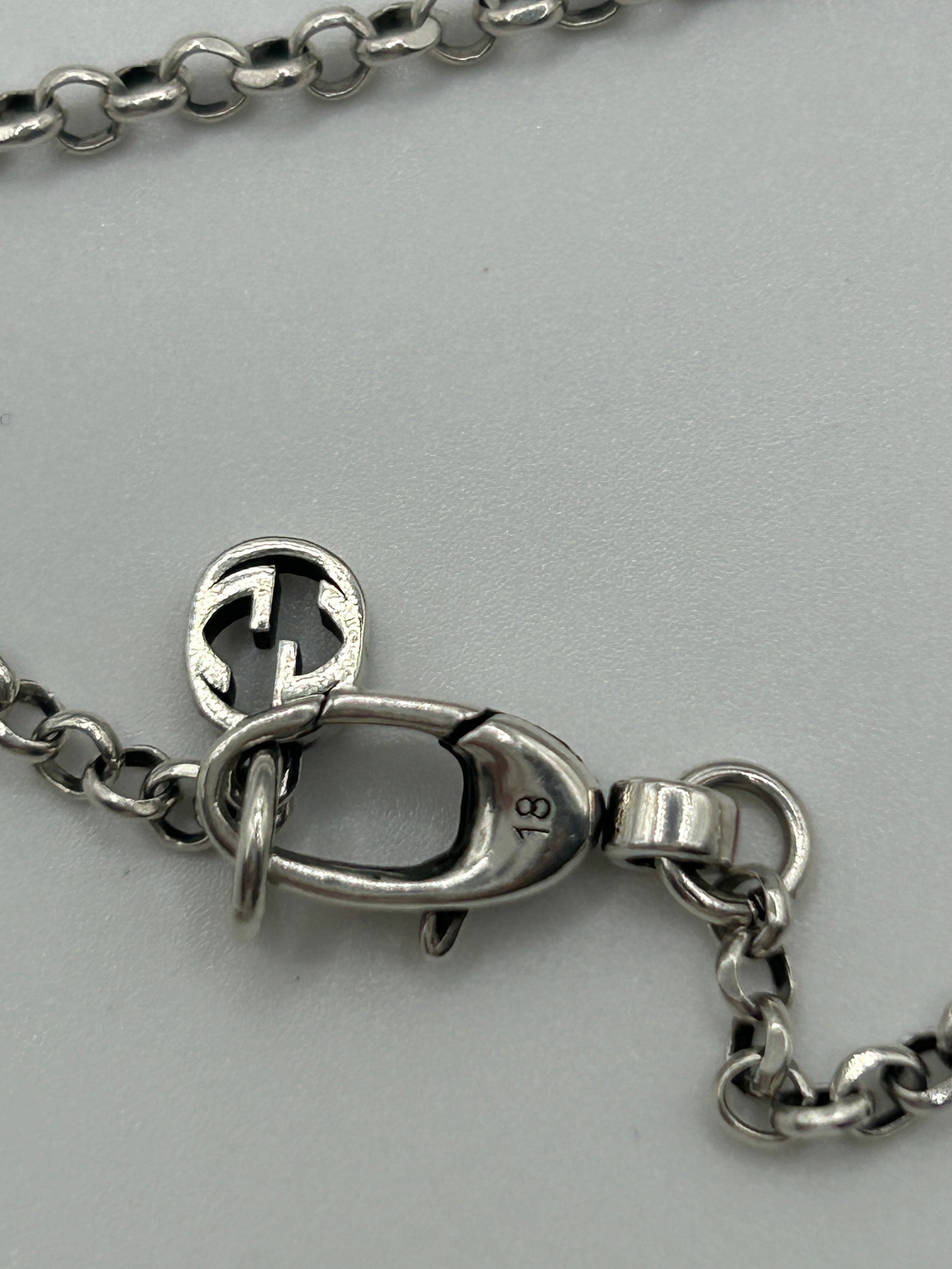 This sterling silver bracelet, with an aged finish, features a key with the now recognisable Double G as the top piece. Expertly made and intricately designed, often with subtle nods to the House, Gucci's silver jewellery collection is presented in an array of contemporary and classic pieces.