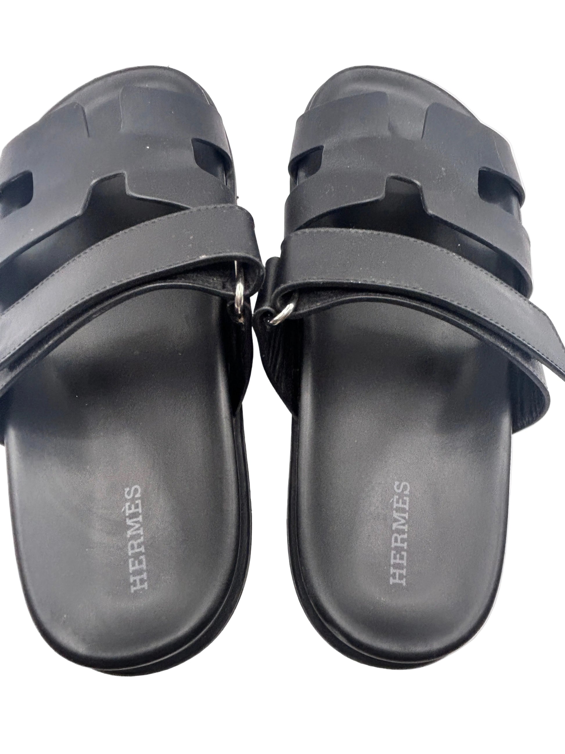 Hermès Chypre sandals in black calfskin leather