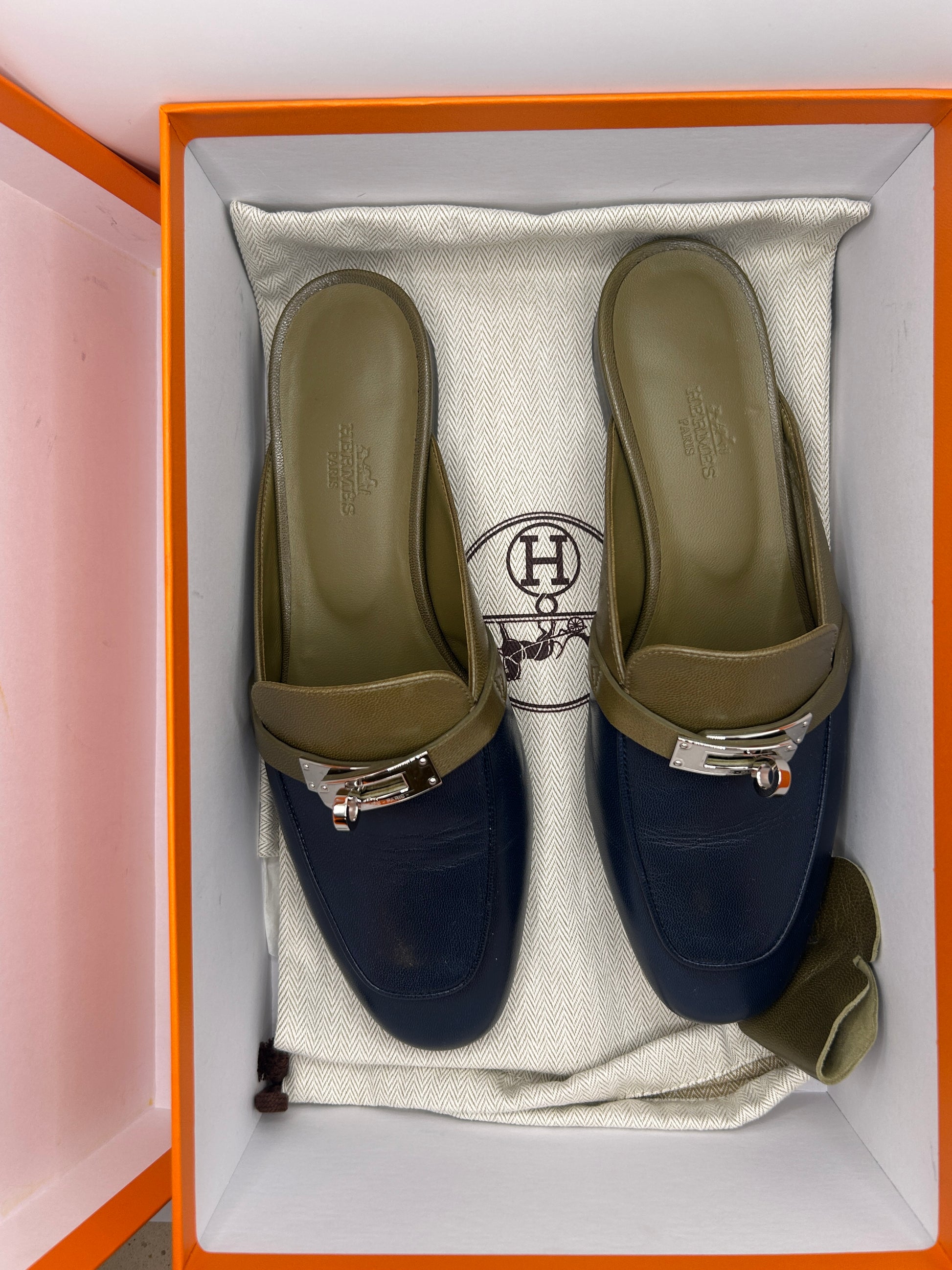 Hermès Oz mules in leather with a Kelly buckle