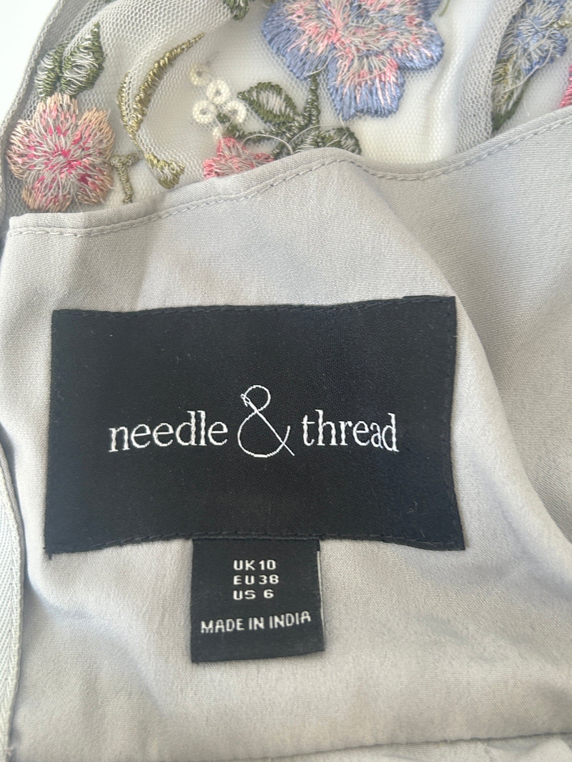 NEEDLE & THREAD Light Grey Dreamers Floral Embroidered Tulle Gown
