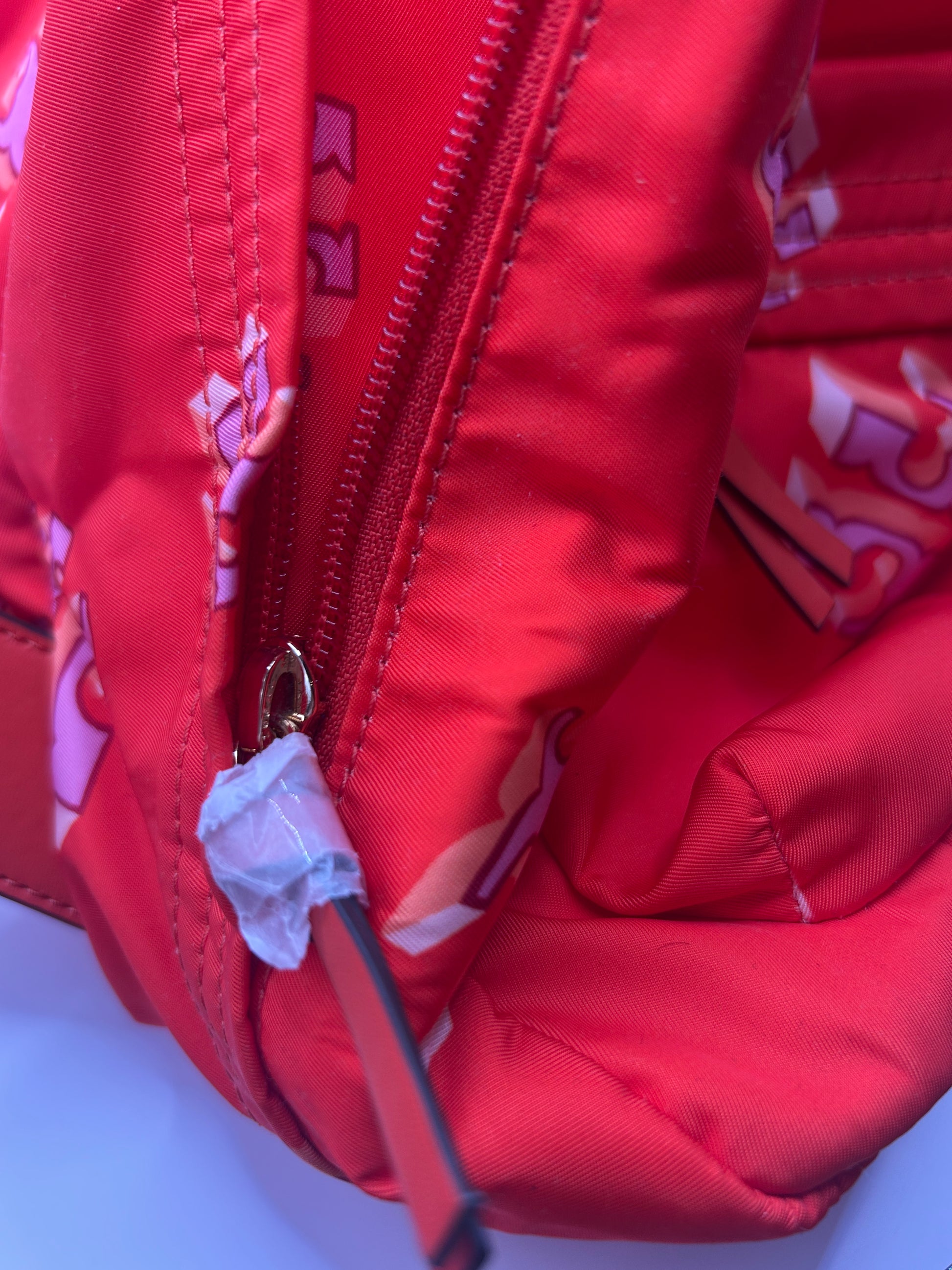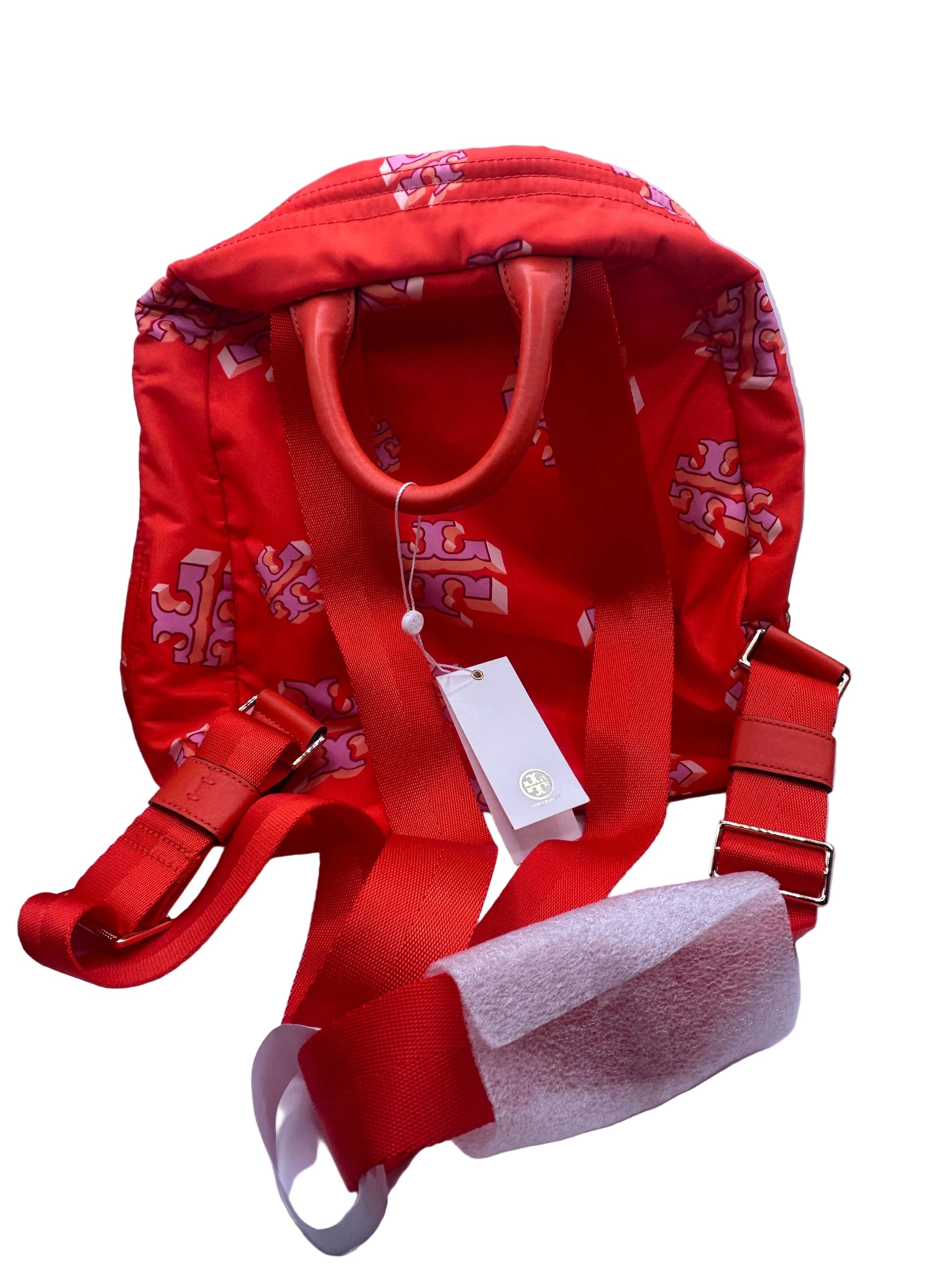 Tory Burch Ella Printed Backpack featuring a crazy logo allover pattern
